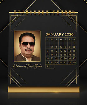 The final output must appear luxurious, elegant, modern, and photorealistic — like a premium brand desk calendar — with the man’s real reference face clearly visible and well-lit, and his name elegantly displayed as a premium signature.”